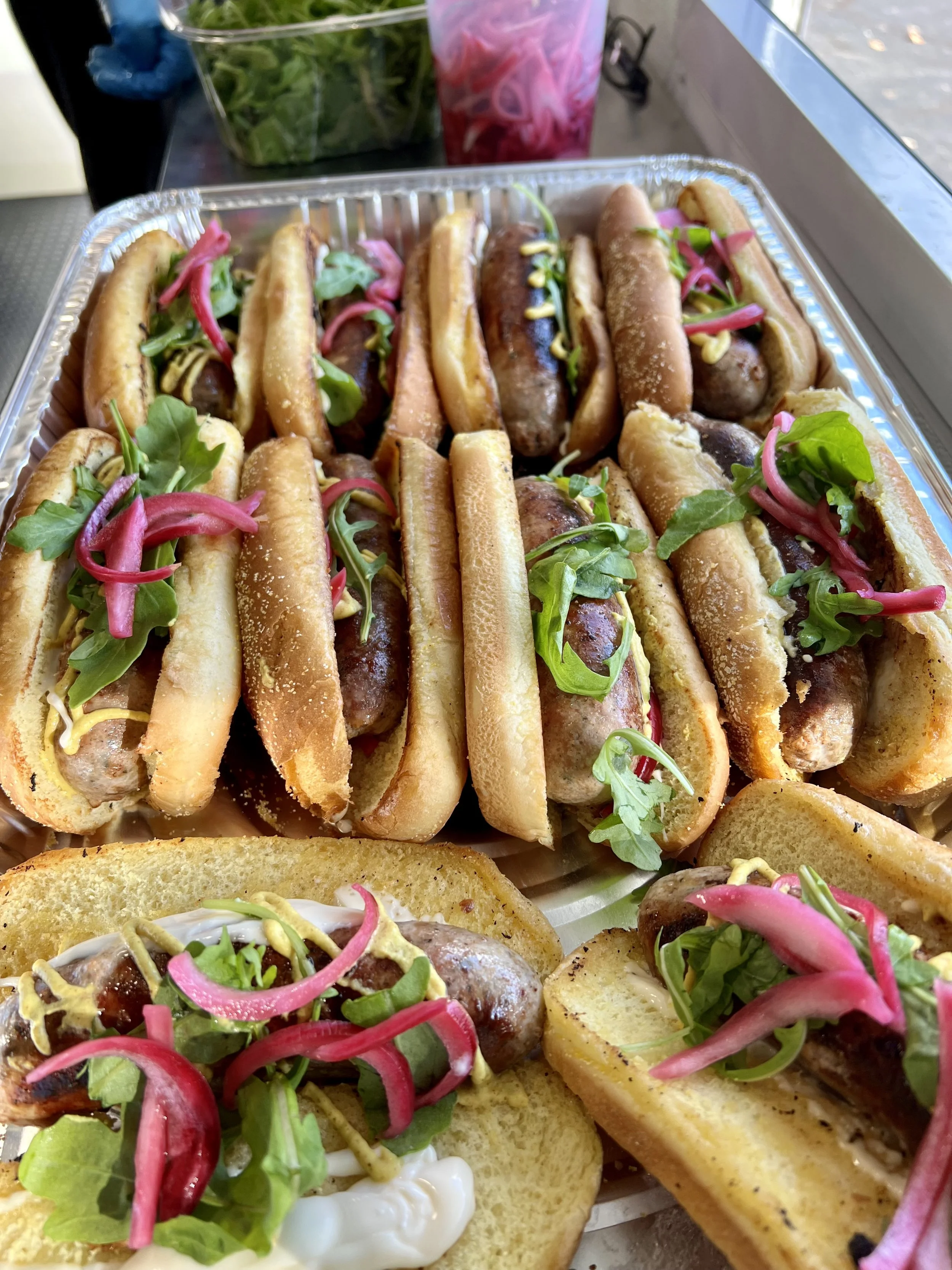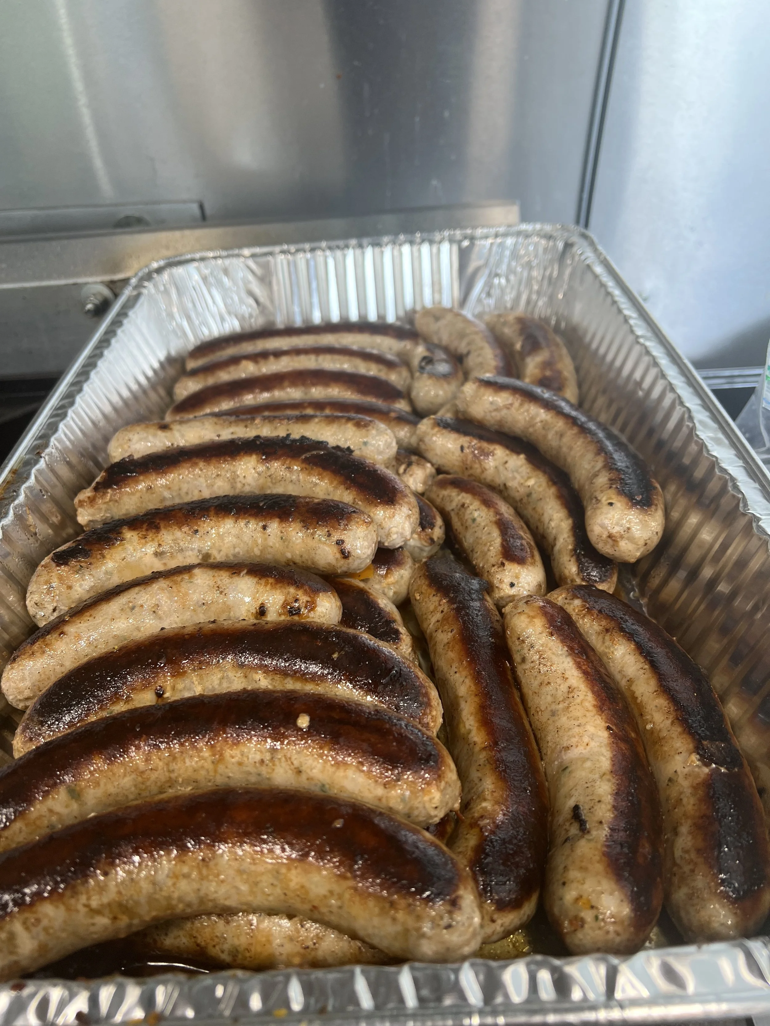 Even though our Sausages are “Bangers”, our menu items rotate based on events and our customer’s request! Crowd Favorites Bratwurst Nashville Hot Chicken Sandwich Kielbasa + Pierogi Platter The Italian Pretzel Bites with Homemade Cheese Sauce(or)Beer Cheese "Chopped Cheese" Steak Bratwurst Mac and Cheese Homemade Schnitzel Platter Other Cravings Korean Gochujang Sausage Tacos Sweet Heat Sausage (Sweet & Spicy Italian) Wraps Mexican Styled Chorizo Loaded Fries (Garlic Parm Crispy Chicken Shown Above) Smoked BBQ Sausage Platter Loaded Nachos (Beef, Chicken, Pork Carnitas) BBQ Pork Belly "Burnt Ends" German Knockwurst Platter Vegetarian Sausages Pulled Pork Sammies Sliders (Pulled Pork/Crispy Chicken) Angela’s Homemade Sweet Treats Cake Pops Apple Streusel Cake Balls Warm Peach Cobbler Rice Pudding Bread Pudding (Churro Bread Pudding Shown Above) Cup Cakes (Seasonal) Dirt and Worms (Seasonal) Muffins (Assorted Variety) Mini Pumpkin Banana PUP Cakes (For Dogs) Cookies (Assorted Variety) Catering